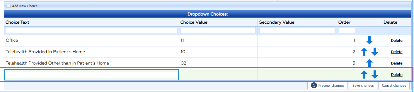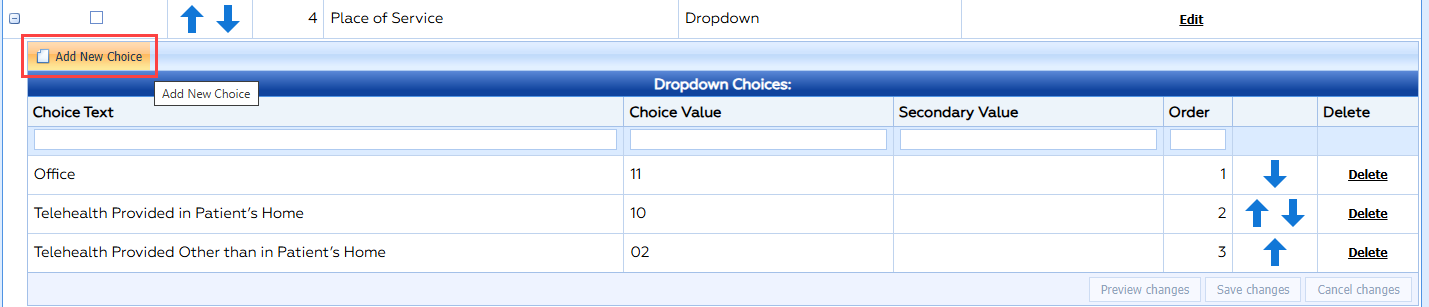 - In the Choice Value field, enter the Place of Service 2-digit code. Then click Save changes.