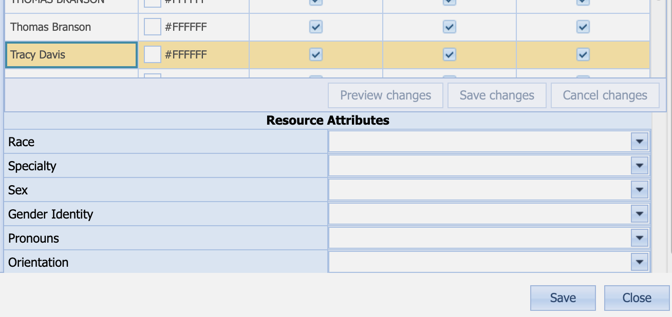 - Click Resource Attributes to edit the attributes available to users and on the schedule