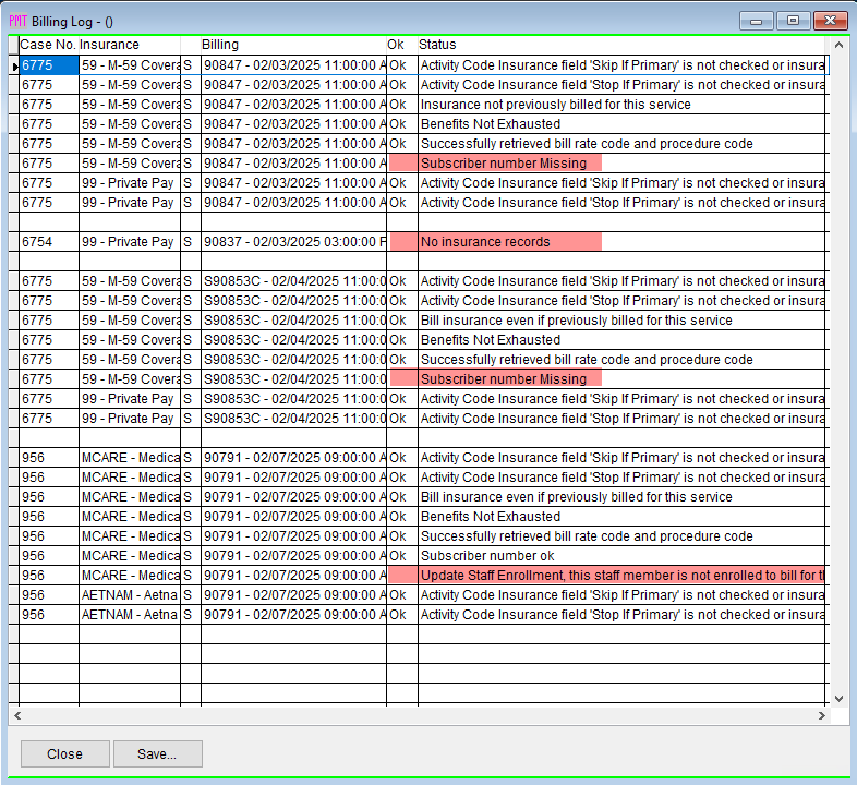 In the above example, Case No. 6754 failed on the first validation check: "No insurance records." Whereas, Case No. 956 passed six validation checks before hitting a failure.